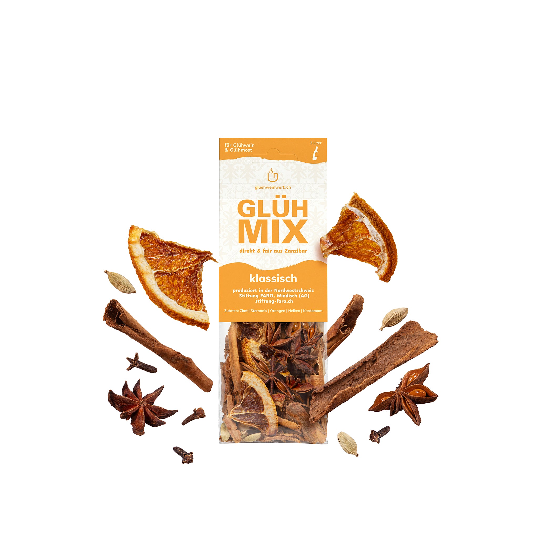 GLÜHMIX klassisch 3L für Glühwein wie auf dem Weihnachtsmarkt - einfach besser. Die Glühwein-Gewürzmischung für 3 Liter Glühwein oder Glühmost mit Rezeptanleitung und QR-Code zum How-To-Video.